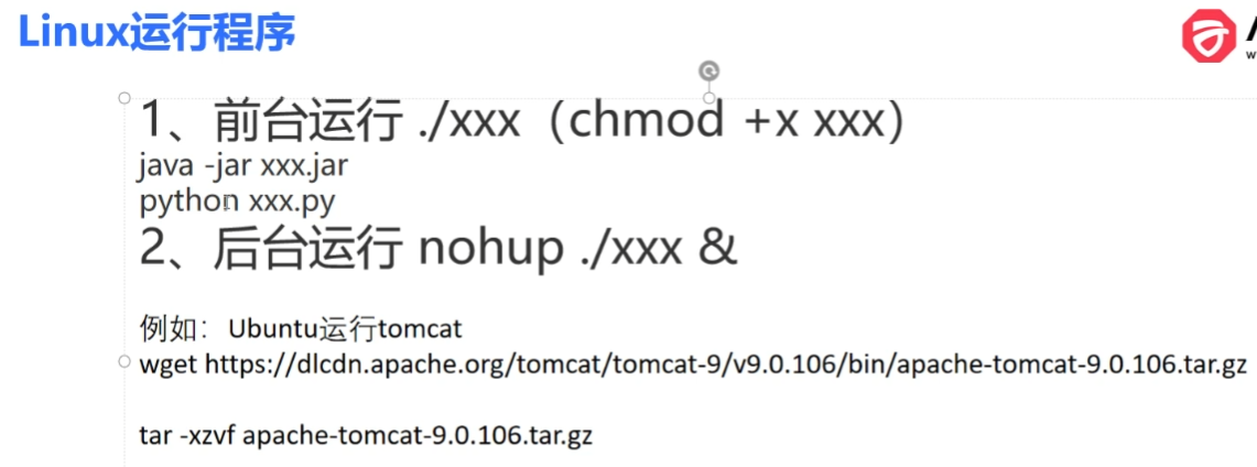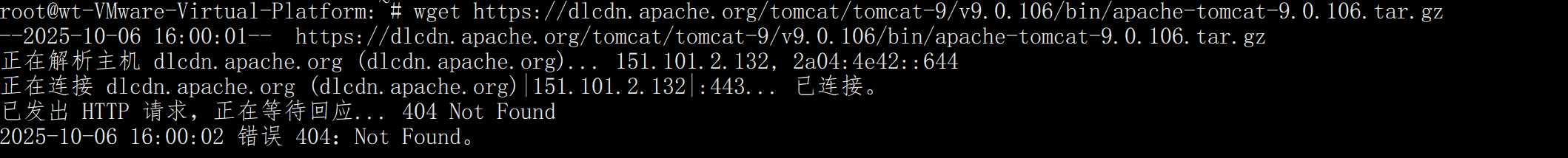 # 问题描述 课程:《Linux操作系统 NO.1515》 章:系统资源状态管理 小节:进程管理、服务管理 课程PPT上提供了一个 Tomcat 9.0.106的下载地址  但是后来Apache官网把这个文件删除了,wget下载提示404  # 解决办法 使用最新的链接(PPT已经更新): wget下载可能有点慢,最快的方法是用迅雷下载,传输到Linux `wget https://dlcdn.apache.org/tomcat/tomcat-9/v9.0.109/bin/apache-tomcat-9.0.109.tar.gz` (如果链接失效就到:https://tomcat.apache.org/ 下载。“常用软件”文档里面也可以搜tomcat,tar.gz的就是Linux版本的)  ``` tar -xzvf apache-tomcat-9.0.109.tar.gz cd apache-tomcat-9.0.109/bin nohup ./startup.sh & ```