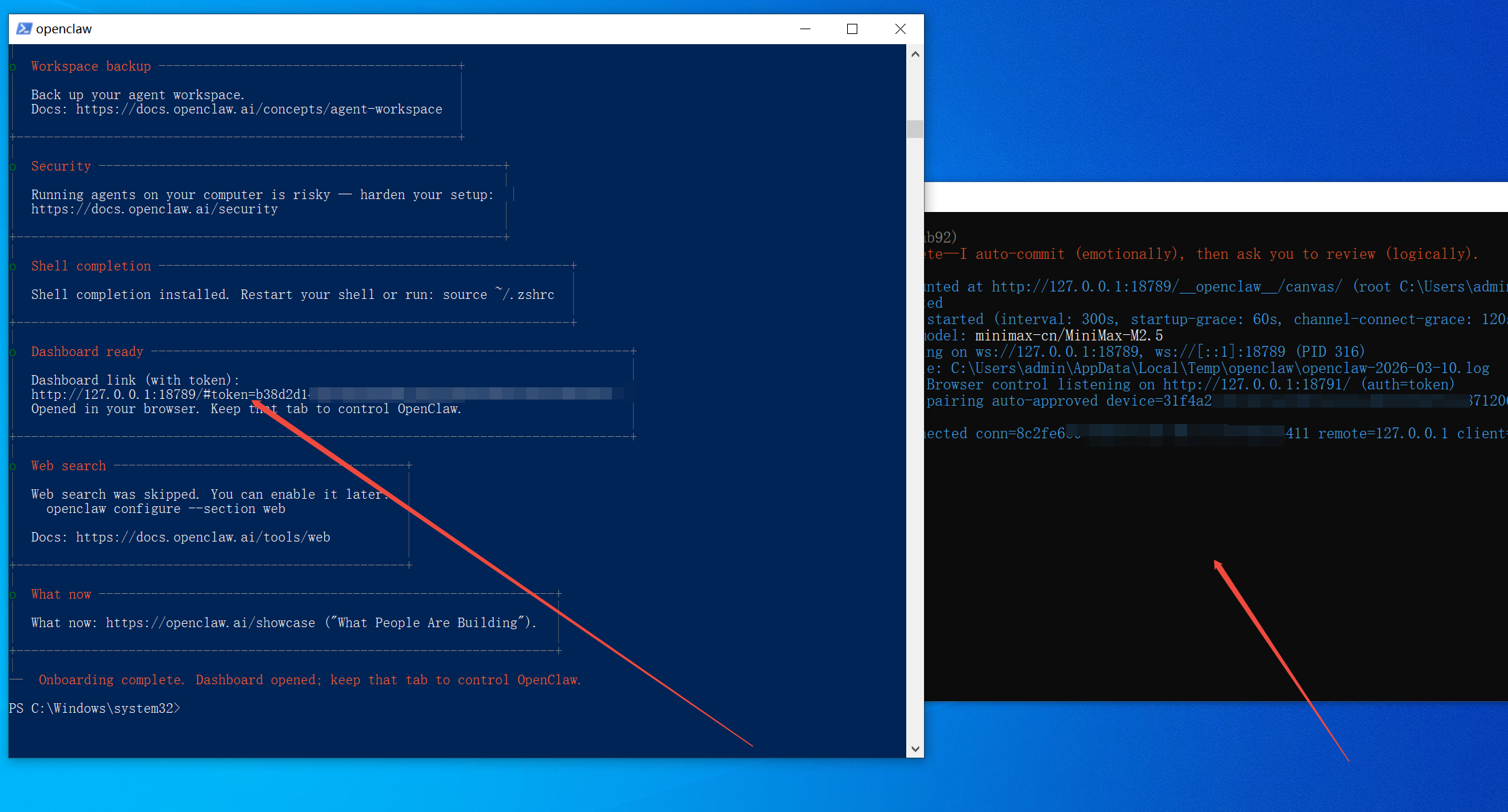 公网以及私密环境部署openclaw的风险警示: https://mp.weixin.qq.com/s/LGCavLF_FeSG7m7xQLRcZw # openclaw 是什么? OpenClaw 是一个开源 AI 智能助手,大家经常听到的“龙虾”或“小龙虾”指的就是 OpenClaw ,你可以把它想象成是一个“养在自己电脑里的私人管家”,你可以用 QQ 、微信、钉钉等软件去直接私聊它,让它帮你操作电脑、浏览器、文件等,完成各种任务。 # openclaw 具体能帮我们做什么? - 文件/电脑操作:整理电脑中的文件、批量重命名文件、找特定名称、时间创建的文件、 把 PDF 转 Word 、备份重要文件 - 自动处理邮件:清空收件箱、筛选邮件、回复邮件、转发邮件等等常用邮箱操作 - 浏览器自动化:帮你查资料、批量下载工具、媒体、自动填表单等 - 记事、长期记忆:具备记忆力,你跟它说过什么、让它做过什么、这些都会存储起来,需要时它能提醒你 - 多平台聊天中控制:你可以在微信、QQ、钉钉等多个常用的聊天软件里跟它说话,它都能统一响应 - 写代码、修复 bug:查看你的代码仓库、帮你写新功能、修 bug、提交 PR、写测试、做 code review等 - 更多的用法可以看它的官方文档:https://docs.openclaw.ai/ # 常见的 openclaw 部署方案 - 云服务器 - Mac Mini - Docker - **Windows 虚拟机(本教程推荐使用)** - Windows WSL 子系统 - Ubuntu 虚拟机 # 安装环境说明 先准备一台 Windows 虚拟机,确保内存配置在 4G 及以上,CPU 4 核心及以上,确保虚拟机能正常联网。 <font color="red"> **为了安全,请在一个干净的,隔离的 windows 虚拟机里面进行安装, openclaw 及其插件能够做到控制你的系统、访问其中的数据等行为。确保你能为自己电脑的安全负责,再进行下面的操作。 为了安全,请在一个干净的,隔离的 windows 虚拟机里面进行安装, openclaw 及其插件能够做到控制你的系统、访问其中的数据等行为。确保你能为自己电脑的安全负责,再进行下面的操作。 为了安全,请在一个干净的,隔离的 windows 虚拟机里面进行安装, openclaw 及其插件能够做到控制你的系统、访问其中的数据等行为。确保你能为自己电脑的安全负责,再进行下面的操作。** </font>  参考链接: 《A21-Win10安装教程》 https://wiki.bafangwy.com/doc/596/ **OpenClaw的安装和配置步骤比较复杂,初次安装使用,请确保每一步的操作、环境和版本要求都跟教程中保持一致!** # 安装步骤 **首先启动你的Win10虚拟机,以下操作都在Win10虚拟机中操作!** 1. 在Win10虚拟机中安装Git 步骤看这个教程:https://wiki.bafangwy.com/doc/812/ 2. 在Win10虚拟机中安装NodeJS 步骤看这个教程:https://wiki.bafangwy.com/doc/904 3. 获取一个大模型 API 提供商的apikey openclaw为你执行操作,回复问题的时候,它需要向在线的大模型发起api请求,获取结果 所以使用它之前必须先获取一个大模型API提供商的api key,本教程使用minimax来演示 <font color="red">提示:大模型api需要付费,且在使用openclaw时非常消耗api使用量(费钱),注意按需使用!</font> <font color="red">提示:大模型api需要付费,且在使用openclaw时非常消耗api使用量(费钱),注意按需使用!</font> <font color="red">提示:大模型api需要付费,且在使用openclaw时非常消耗api使用量(费钱),注意按需使用!</font> 首先访问https://www.minimaxi.com/ 点击主页的登录,用你的手机号去登录即可  登录之后点击账户密钥  再点击创建新的api key  随意输入一个名称即可  **然后这里会立即弹出一个生成了key的窗口,这个key一定要立刻保存下来,后面会用到!它无法重新复制!不能泄露给其他人!**  然后点余额,进行充值,充值之后openclaw才能调用这个api来执行任务 <font color="red">根据自己的需求选择是否充值,以及充值多少!</font> <font color="red">根据自己的需求选择是否充值,以及充值多少!</font> <font color="red">根据自己的需求选择是否充值,以及充值多少!</font> 4. 安装OpenClaw 现在开始正式安装openclaw 在开始菜单搜索powershell,以管理员身份运行  然后在powershell中执行以下命令 ``` Set-ExecutionPolicy RemoteSigned ``` 执行完之后按提示输入y,并按回车  然后执行下面的命令开始安装openclaw ``` iwr -useb https://openclaw.ai/install.ps1 | iex ```  这个过程会比较慢,耐心等待 安装的过程中如果弹出这个窗口,点击允许访问  安装好之后就会出现这个界面和提示  注意这里的No前面有一个<符号,这是一个提示符,代表当前这个配置的选项是No 这里要按键盘上的方向键,按下左方向键,选择Yes,然后按下回车  下一步,保持默认,直接按回车  选择MiniMax,按回车  选择Mini Max cn,按回车  选择第一项,按回车  在这里,粘贴你之前在Minimax上生成的api key,然后按回车  保持默认,按回车  选择最后一项,skip开头的,按回车  选择skip,按回车  选择no,按回车  这一步注意,skip这一项前面是星号  要按空格,把它变成加号,再按回车  接下来会自动运行,运行到下面这一步就是安装成功了 **复制下面图中左面窗口这个url,这是openclaw的管理页面,放到浏览器里面去访问** **右面是自动打开的cmd窗口,不要关闭它,关闭了openclaw就无法访问了!**  访问上面复制的链接,如下图所示  箭头所指的健康状态是正常的,就说明你的openclaw安装成功了,并且运行正常 这里的聊天框就是你和openclaw对话的地方,你可以输入问题,让它回复你 例如,让它查看电脑上的 cpu 和内存使用情况:  输出结果:  可以看到它输出了cpu的型号、使用率,以及内存的总容量和已使用的量,跟系统中的实际情况是一致的(使用